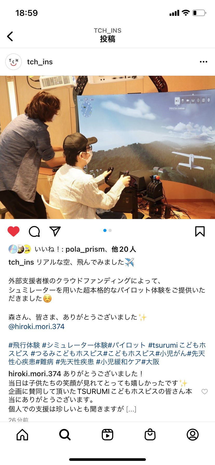 お久しぶりです!森大樹です!クラウドファンディングで応援して頂いていた「ロハロハ」さん主催のロハロハフェスに参加してきました! 胸が熱くなるフェスに涙も流してしまいました。その時にお会いした、ミュージシャンのDAIさんにYouTubeライブにお誘いしてもらえたので、近々、出演してきます。詳細はFACEBOOKからhttps://www.facebook.com/settings?tab=account&section=usernameまた来年、大阪TSURUMIこどもホスピスで再び、フライトシミュレーターを開催予定です。交通費、機材搬入費の6万円の資金を募り、達成!募金や支援物販など、各方面からのご協力のお陰です。本当にありがとうございます!ぜひ月額のキャンプファイヤーコミュニティーの参加もお待ちしています!頑張ります!