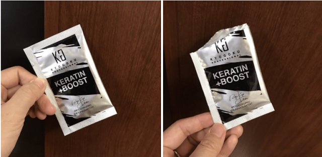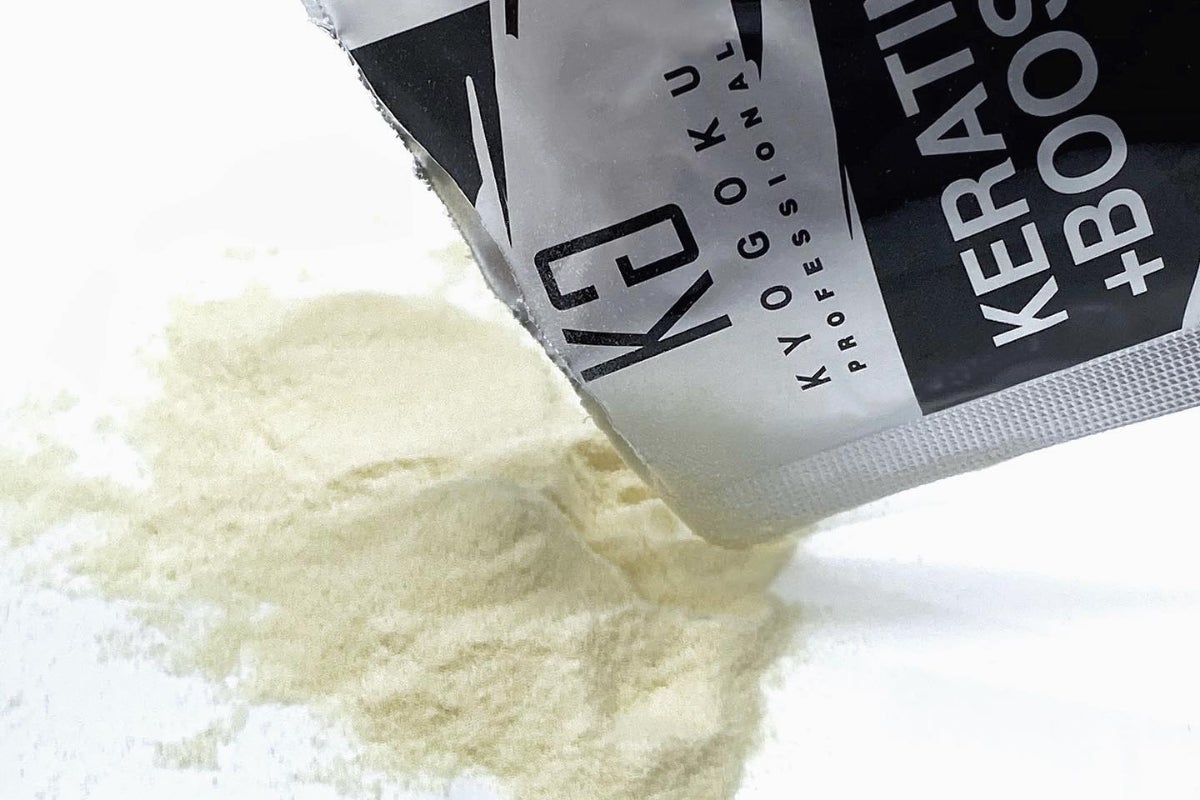 今までになかった、パウダータイプのトリートメント【KYOGOKU ケラチン ブースト+】です。