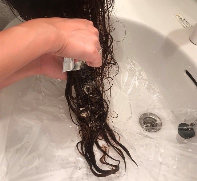 すでに髪の毛が「トゥルトゥル」になっていて、洗い流している時も手ぐしが通るようになっていました!