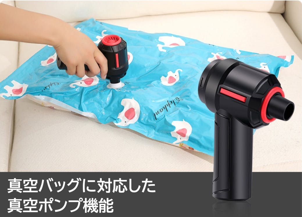 高性能のモーターを採用し、服や食べ物の真空バッグの空気を瞬時に排出できます。