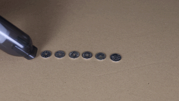 「VACL」は手のひらサイズに見えますが、コインでも簡単に吸い込める強吸引力を持っています。
