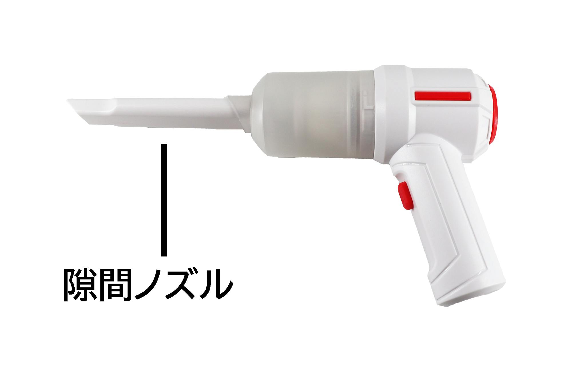 隙間ノズルは車内の狭い箇所にあるゴミを吸い取るの際に使用。また、ミルクやジュースなどの飲み物を掃除するのも可能。