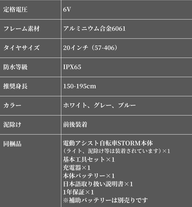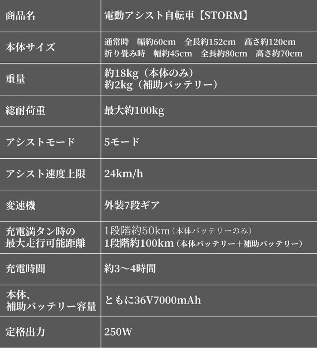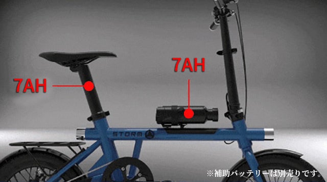弊社の販売する電動アシスト自転車【STORM】は、補助バッテリー(別売り)を併用すると、1度の充電で最大100kmの走行が可能!