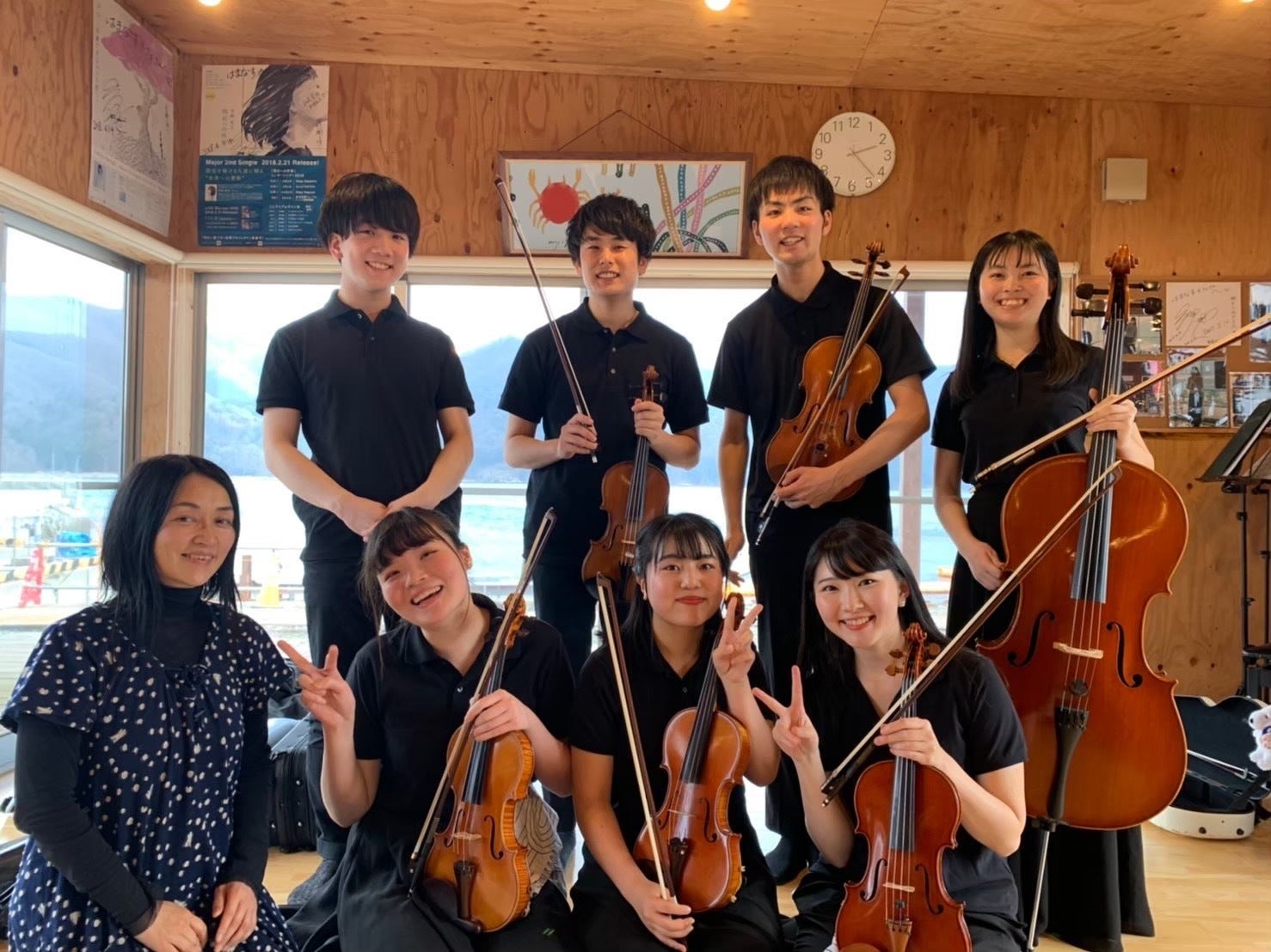 東日本大震災における被災三県の中でも最も被害の大きかった沿岸部を訪問し、演奏活動を行っております。被災地の皆様に寄り添い、被災地の皆様に音楽とともに笑顔をお届けできるよう活動しております。また、被災地以外でも演奏会を行うことで、復興の状況を知っていただき、震災を風化させないように活動しております。