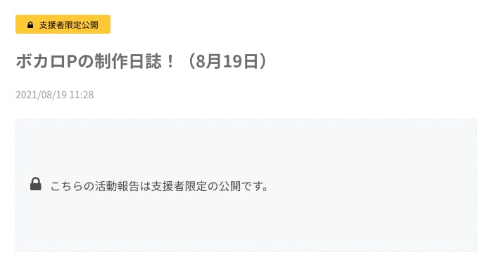 支援いただいた方にのみ御覧いただける制作進捗を記した日誌を読むことができます。