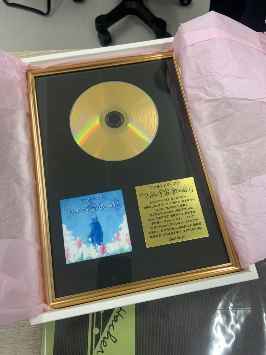 一定以上の成績を収めたアーティストに対して関係各所に配られる記念品です。