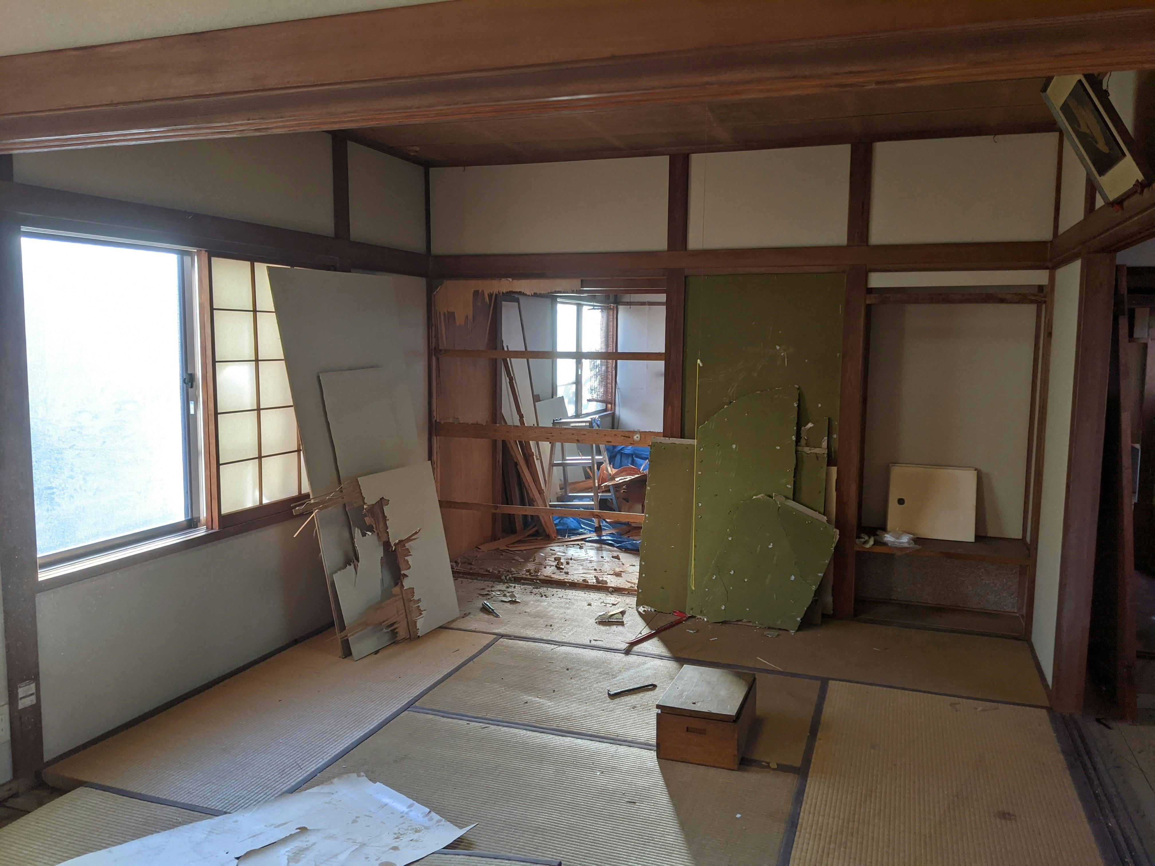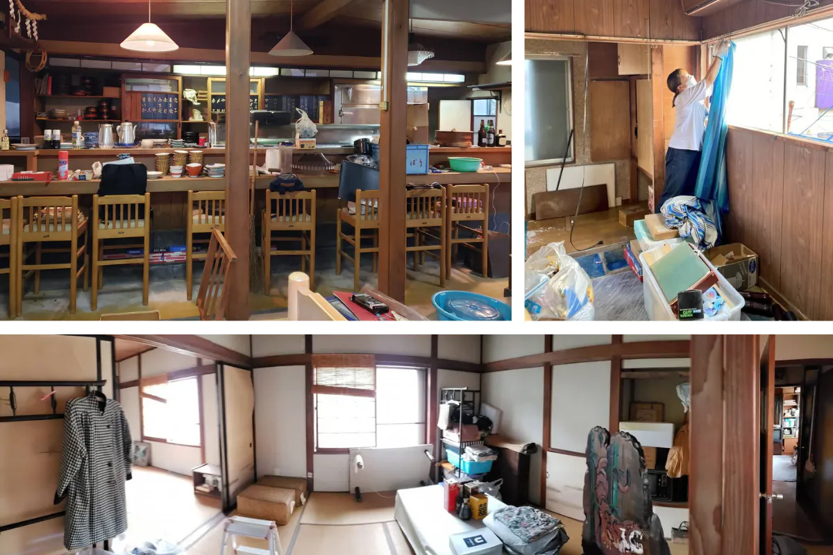 10月23日にコワーキングスペースとレジデンスがオープンし、いよいよ「ゲストハウスgiwa」の改装を始めます!物件は三島の中心地にある元寿司屋。10年以上前に閉店し、店内や住居スペースに当時の生活がそのまま残されていた、木造2階建ての一軒家です。