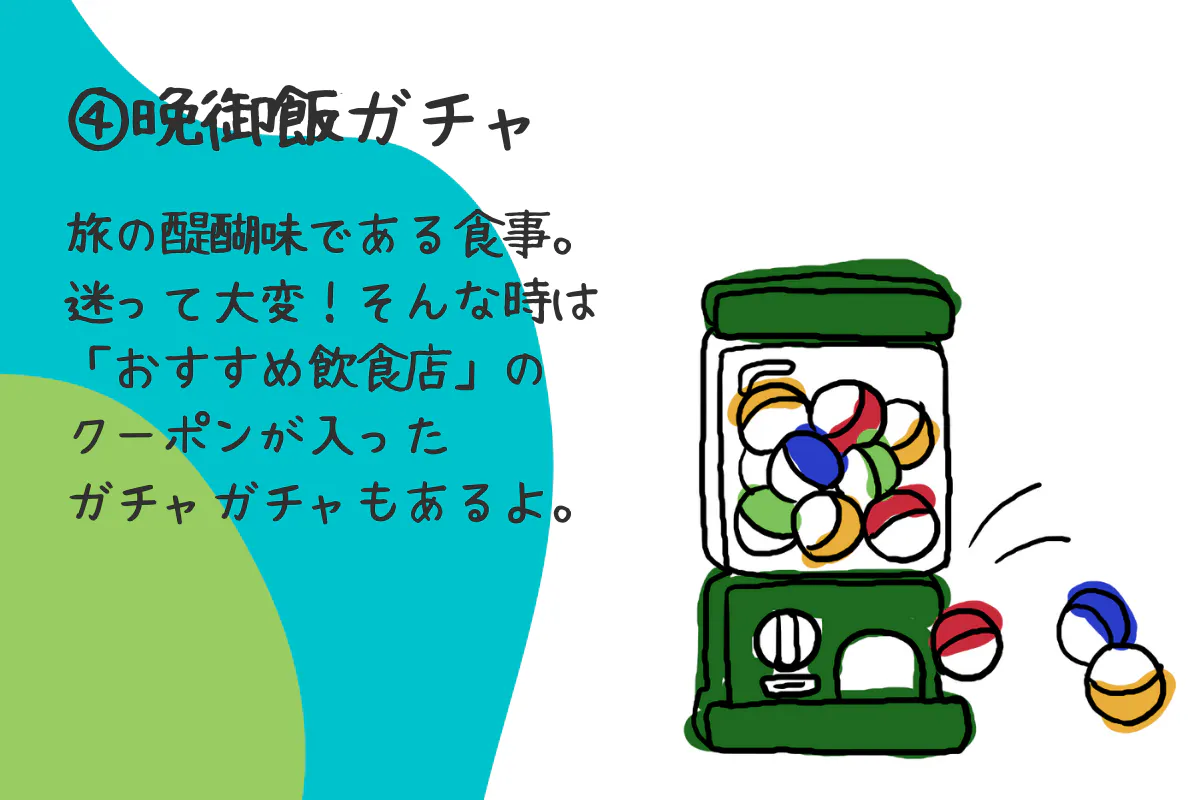 仕事を終えたら、「晩御飯ガチャ」で引いたお店でクーポンを利用して夕食。「giwaに宿泊してるんですね、どこから来たんですか?」と軽く店主と会話をして、美味しい食事を楽しむ。