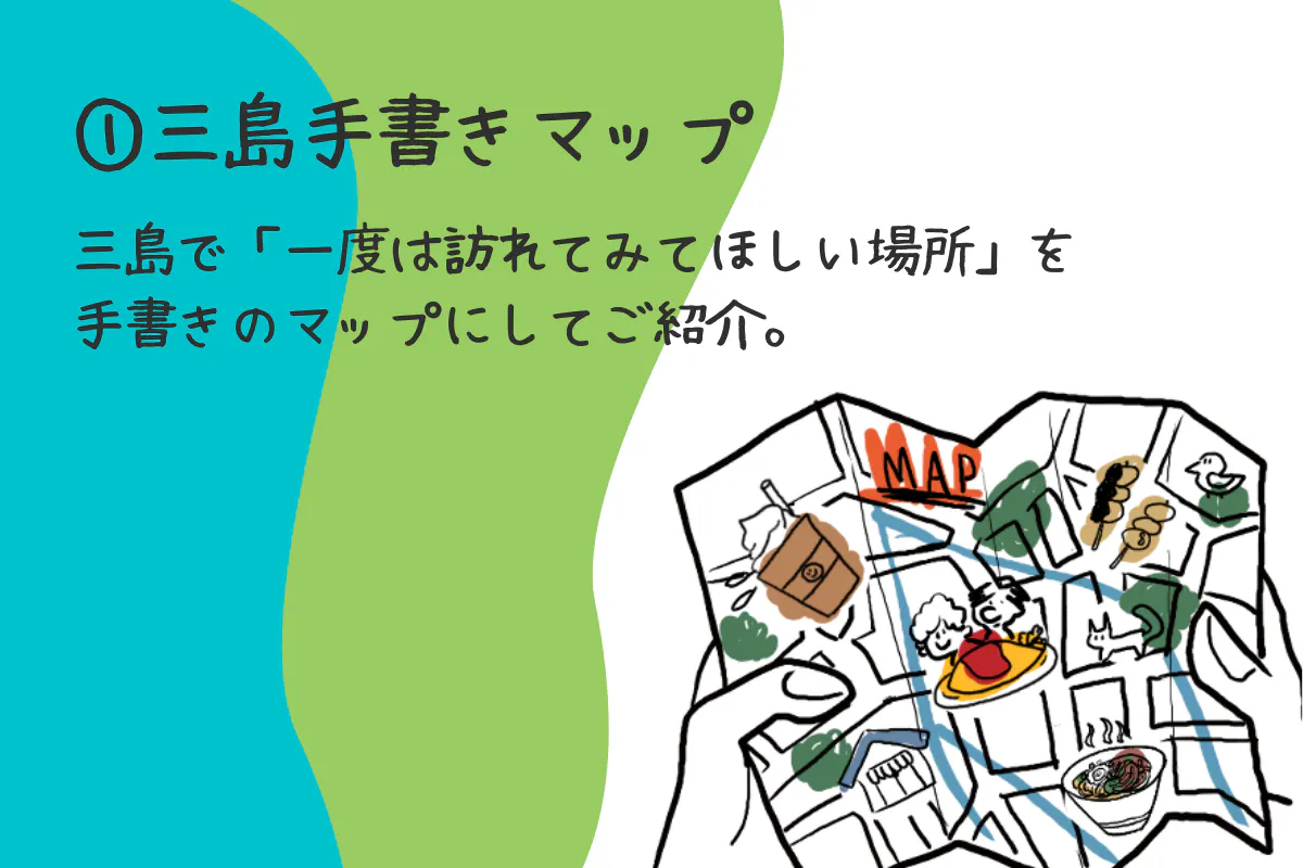 ランチは、「三島手描きマップ」で気になる飲食店へ。お腹いっぱい食べたら、帰りに近くの「源兵衛川」を散歩して、少し風に当たってから午後の仕事を再開。