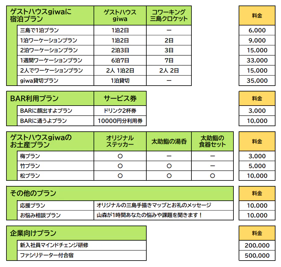 三島にはローカルな魅力がたくさんありますが、ガイドブックやインターネットで見つけることが出来るのはほんの一部です。そのため、「ゲストハウスgiwa」では、滞在する人が三島と周辺で「ここ行ってみたい!」と思える場所を見つけ、地域での出会いや繋がりのきっかけをつくることを目指します。