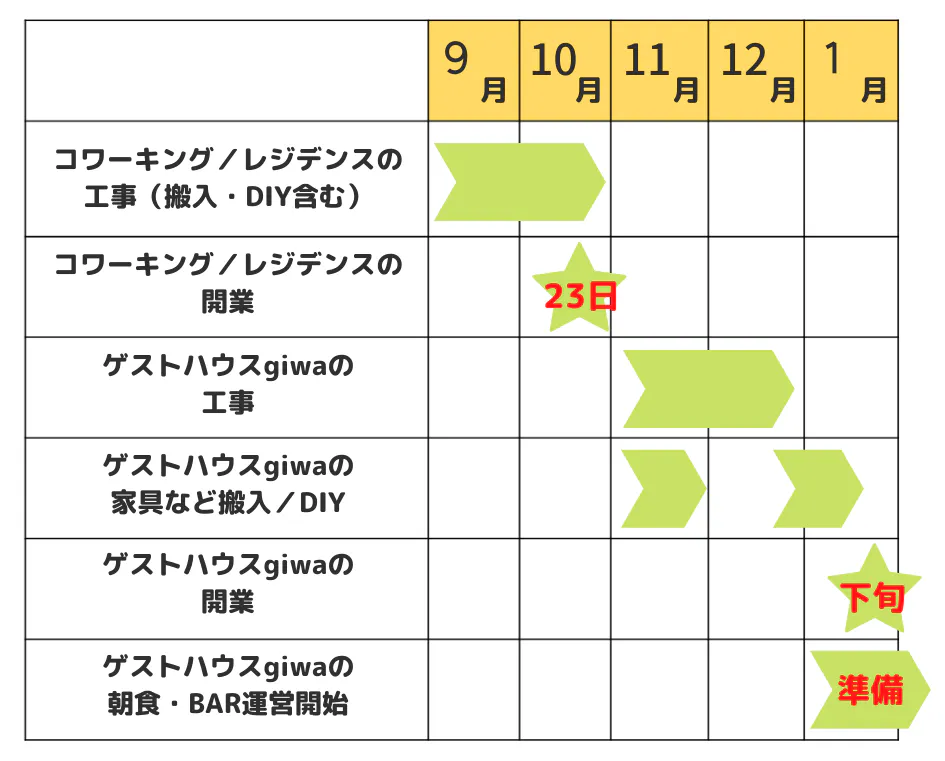 今回、こうした僕の経験から、移住に限らず「自分の関わりたい濃度で地域と繋がる」を叶える場をつくりたいと思い、「ゲストハウス、コワーキングスペース、レジデンス(住居)」をつくります!