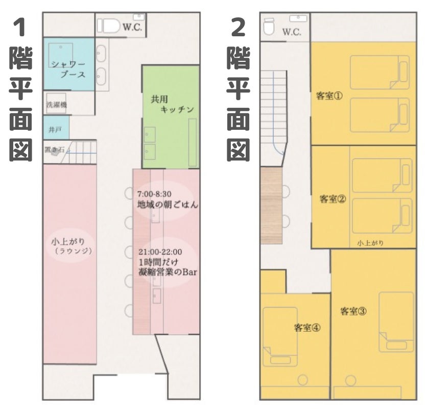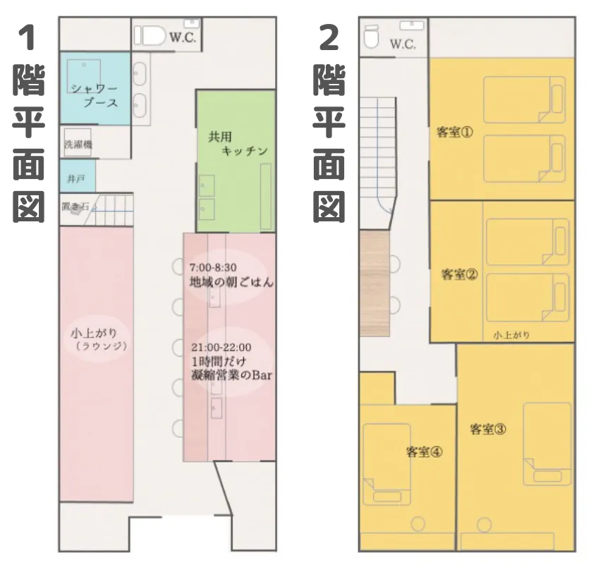 2階:個室4部屋(相部屋なし、全室個室予定)