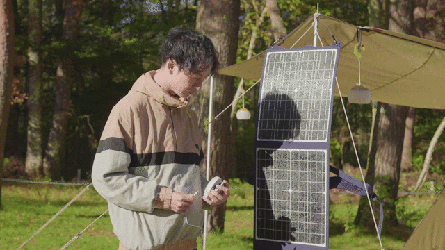 一人でも簡単に設置、持ち運びができるマルチウェイのソーラーパネルです。