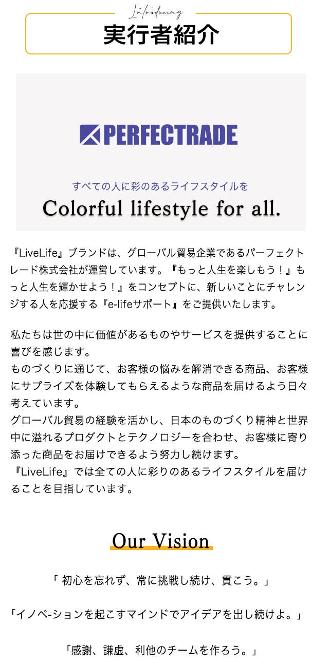 2019年、地球への負担を少なくするために、環境にやさしいグリーンな持続再生エネルギーという産業に足を踏み入れました。 2021年、より便利な製品を消費者に提供し、誰にとっても面白くて実用的な製品を提供するために、新しいブランド「LIVELIFE」を作りました。