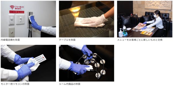 全てのカラオケルームは利用後に徹底した清掃と除菌を行います。パセラのルームクリーニングチームは、清掃時の手袋装着を義務付けています。