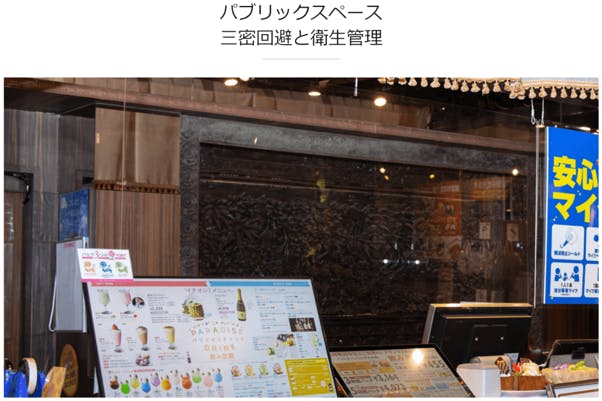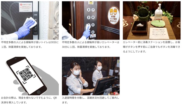 みなさまに安心してお楽しみいただけるように、コロナ発生当初より感染症対策を徹底しています。具体的な対策内容は下記の通りです。
