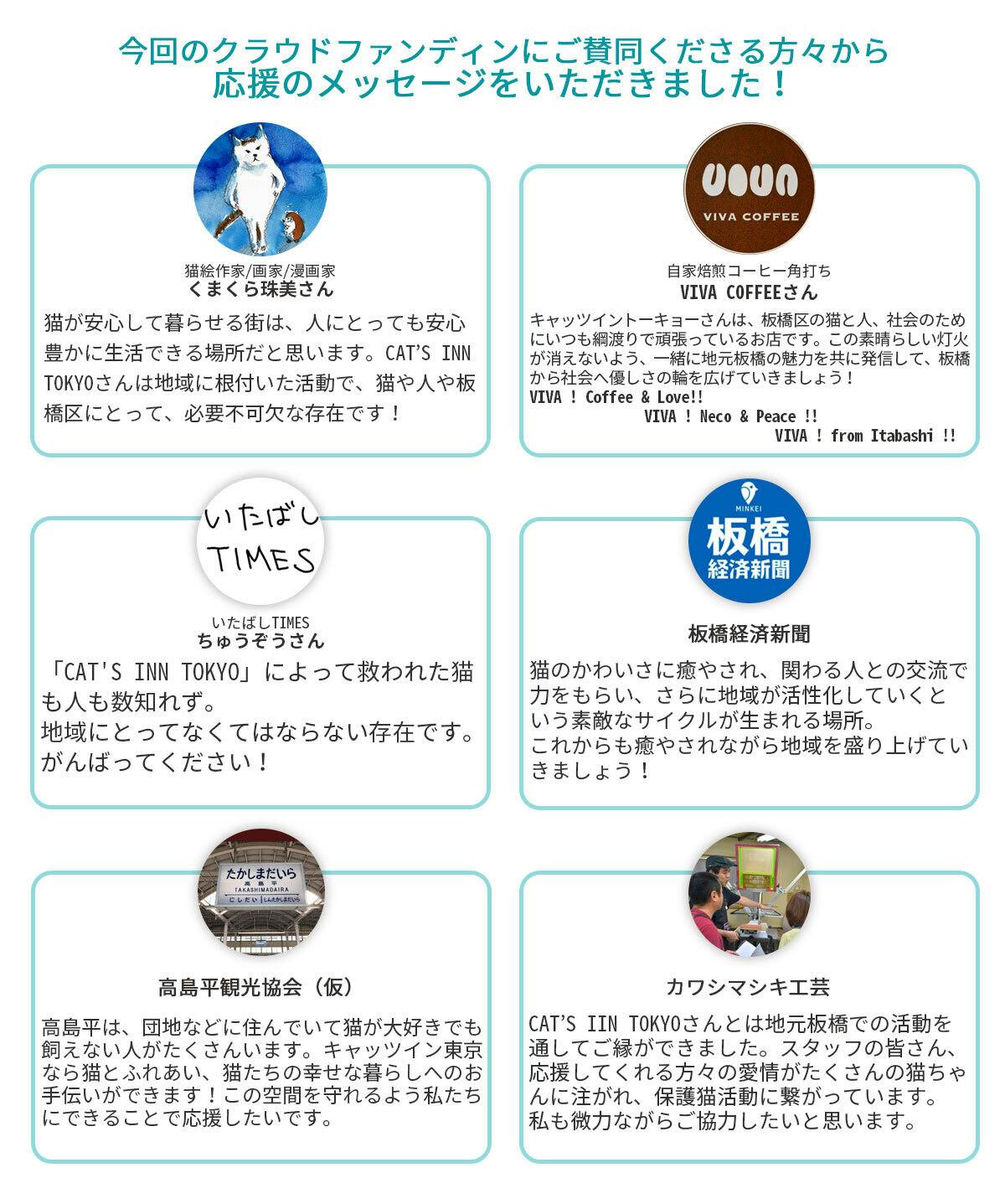 CAT'S INN TOKYO(キャッツイン東京)は板橋区にある、里親募集型の小さな保護猫カフェです。板橋区を中心に、飼い主のいない猫の保護と、保護した猫に新しい家族(飼い主)を見つける取り組みをしています。