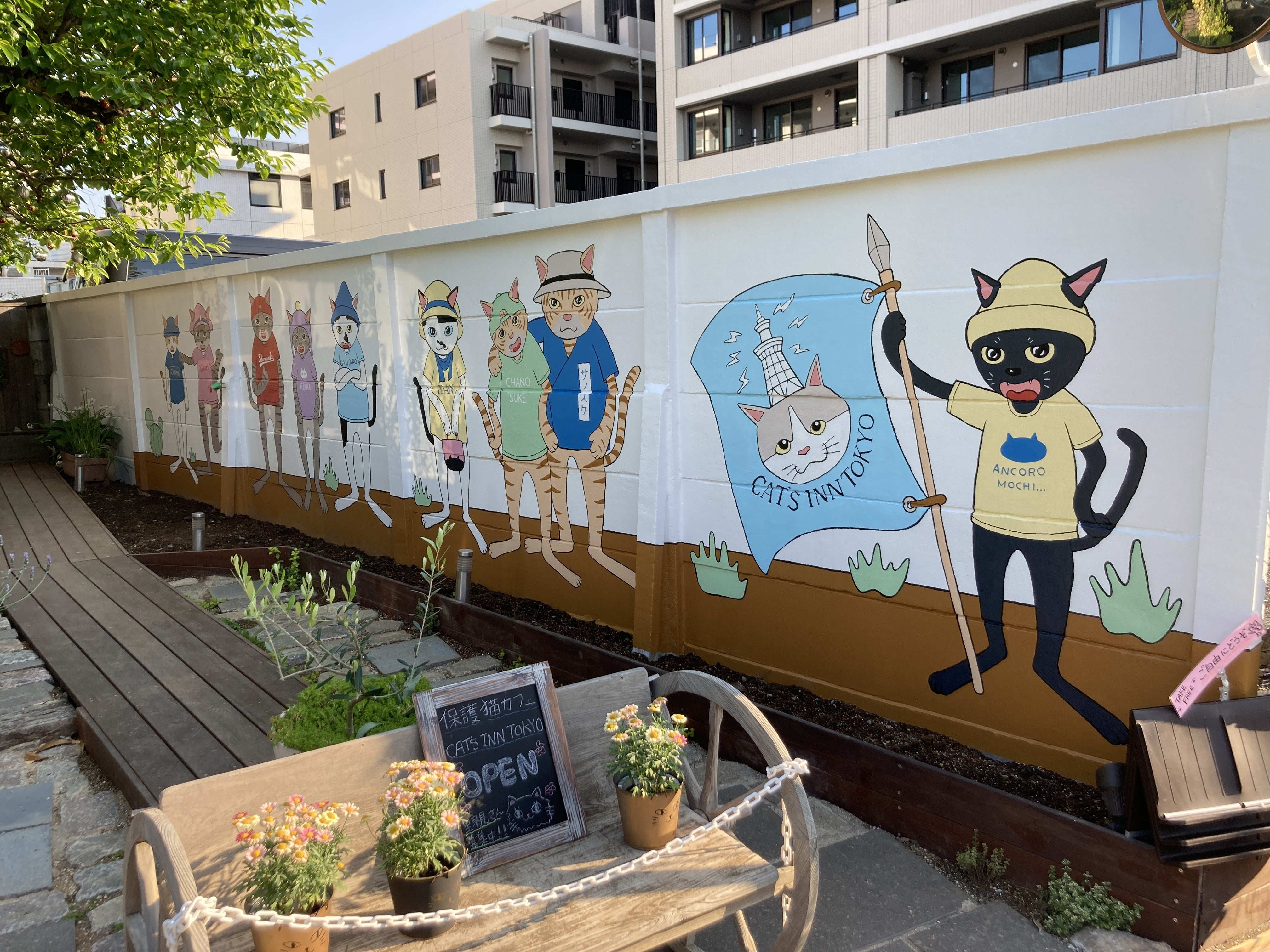 2022/06/10 20:00皆様のご支援により、壁画制作&造園が完了いたしました♪日頃よりキャッツイン東京をご支援くださりありがとうございます。表題の件でご報告です。お店に遊びに来てくださっている方はご存知ですが当初よりクラウドファンディングの目的であった壁画制作及び造園工事が完了いたしました!お店が生まれかわったような明るさになり、写真を撮ってくださる方々や、立ち止まり「わあ!」と声を上げてくれる子どもたちなど当初の想定を上回る反響にスタッフ一同、大変喜んでおります。また、造園によりお店入り口までの導線が整備されたため、当日飛び込みでのお客さまや、興味を持って、店先を覗きに来てくださるお客様が格段に増えました。これらひとえに、猫たちを想いご支援をくださるみなさまのお力添えのおかげです。↑失敗したパノラマ撮影笑 でも雰囲気は伝わりますか??クラウドファンディング一部リターンを商品化!一部リターンを商品化、店頭販売しております。一押しはくまくらガハクによる描き下ろし作品のポストカード!手書きの質感を再現したいので通常のポストカードよりも、厚手でファンシーな紙質を選び高品質な印刷で仕上げました!その分、原価がかかってしまいましたが、額に入れればお部屋に飾ってもさまになりますよ。ECサイトでも取り扱っています。https://catsinntokyo.easy-myshop.jp/新しいキャッツイン東京にぜひ遊びにきてくださいね♪ もっと見る