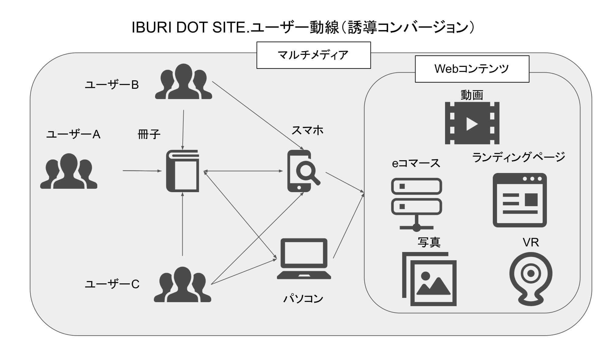 IBURI DOT SITE.ホームページをhub(集結起点)として、写真、動画、VRコンテンツへ情報誘導コンバージョン。eコマースでレア商品も販売を予定しています。実はPC版とスマホ版では画角が異なるため、それぞれに最適化したコンテンツを作り込んでいます。