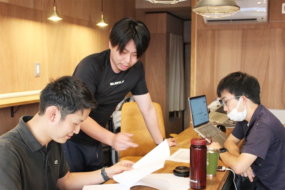 打ち合わせにて。鈴木さん、山崎さん、神(じん)さん