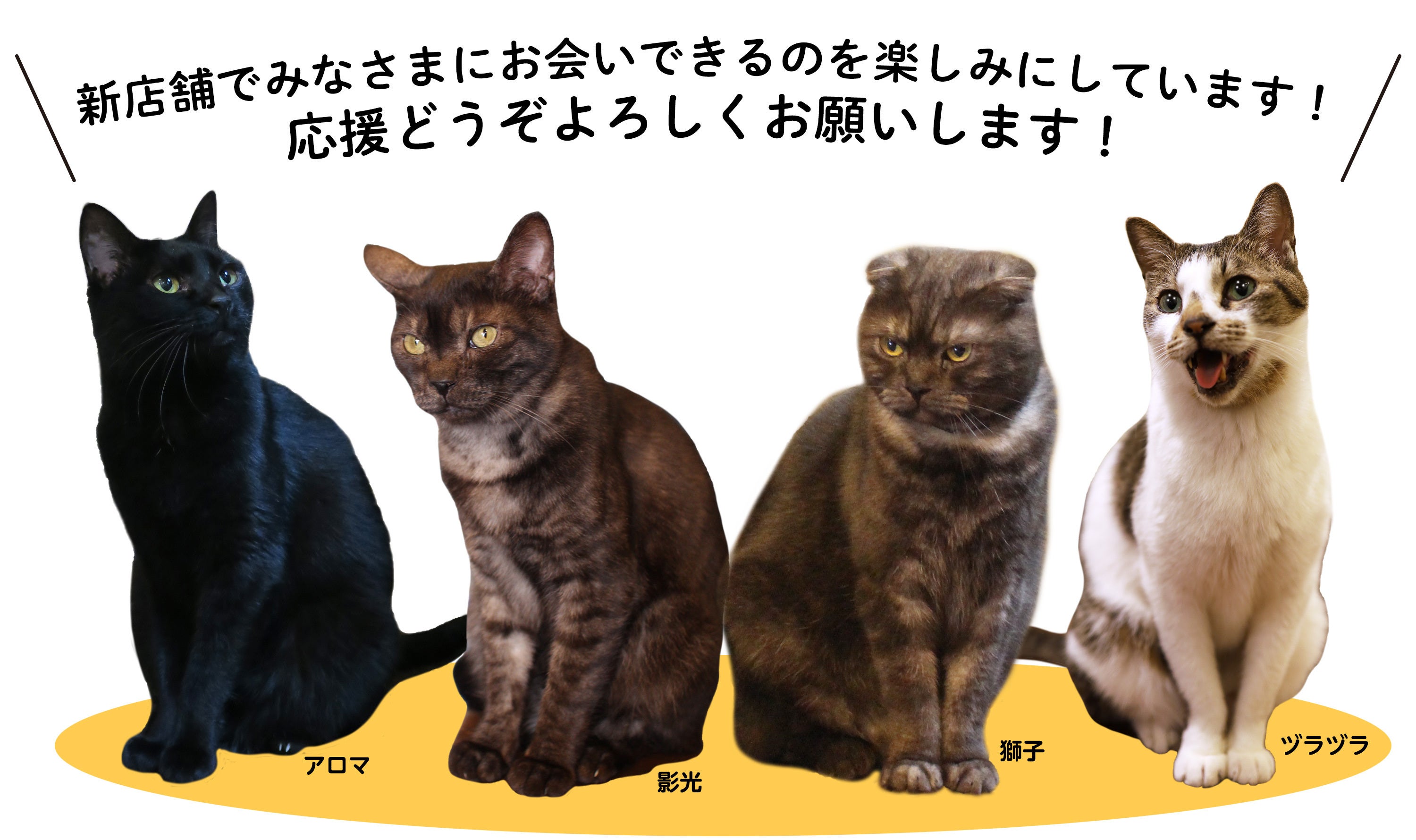 前店舗は猫たちに支えられお客様に愛された店舗です。今後も猫たちのご縁をつなぐ場として、今後の猫達をとりまく社会問題を少しでも小さいものにするために「時代に沿った猫との暮らしの形」を理解していただき実践していただくことを広める場としてあり続けます。
