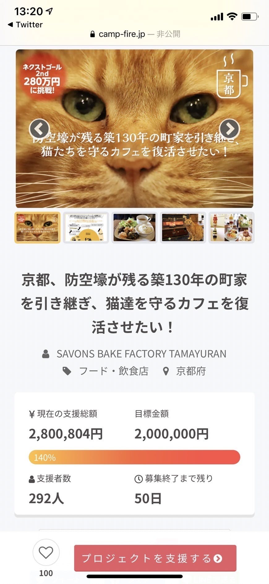 本日11月2日、13寺20分頃、2ndゴールの280万円も無事に達成できました!