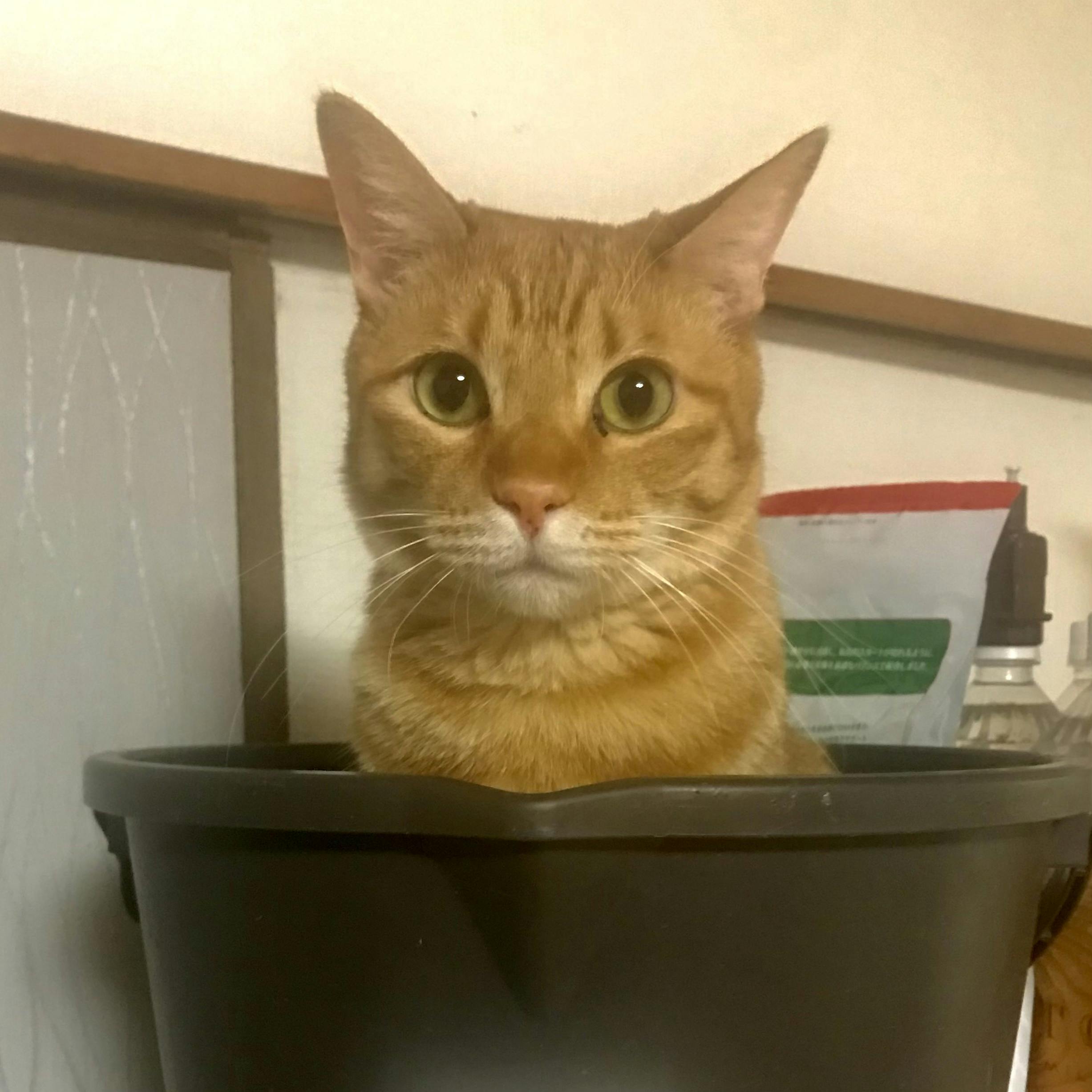 今日はバケツからひょっこり顔を出す茶トラ女子のみやちゃんが皆様にご挨拶致します。