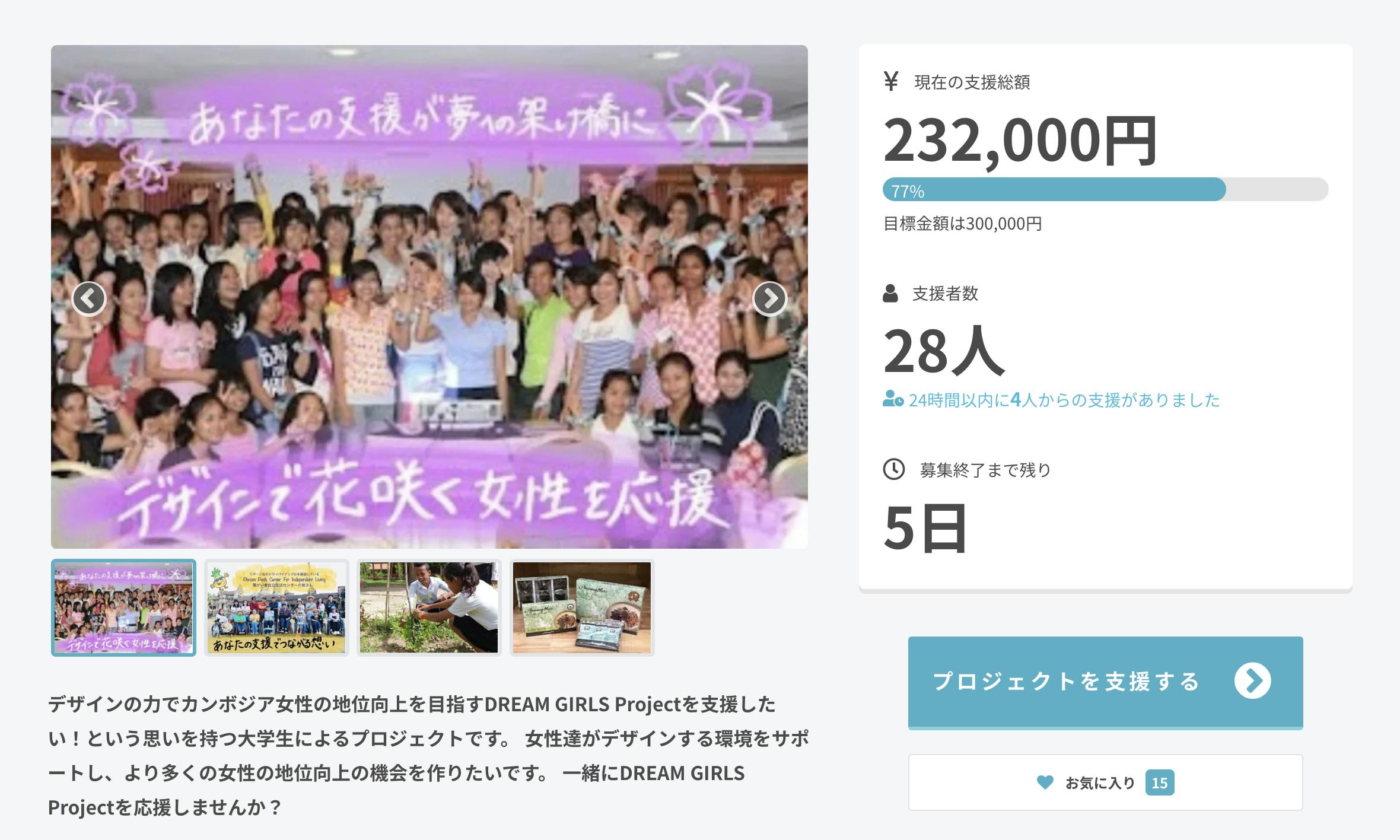 残すところあと5日!多くの方々のご支援により、目標金額まであと23%となりました。