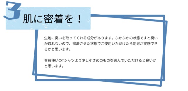 そのような皆さまに、この消臭シャツを知っていただき、日々の生活で活用いただきたいと考えています。