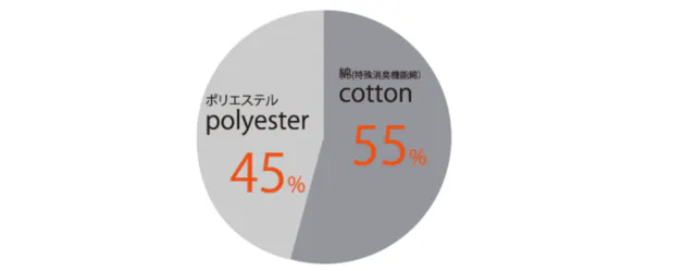 ⇒特殊消臭機能綿:ポリエステル=55%:45%