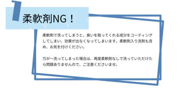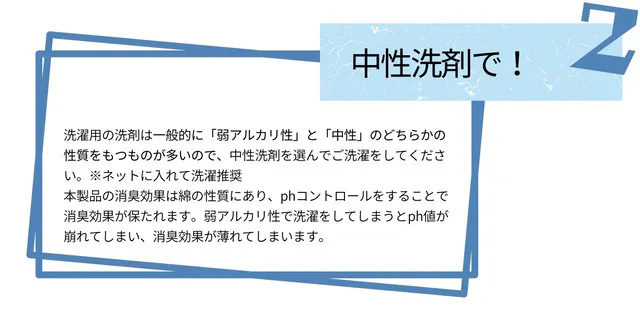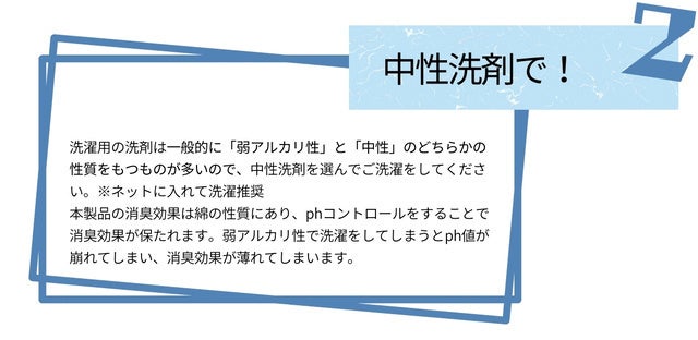 消臭剤を塗っているわけではないため、気にせず洗濯することができ、洗濯によって効果が低下することがありません。