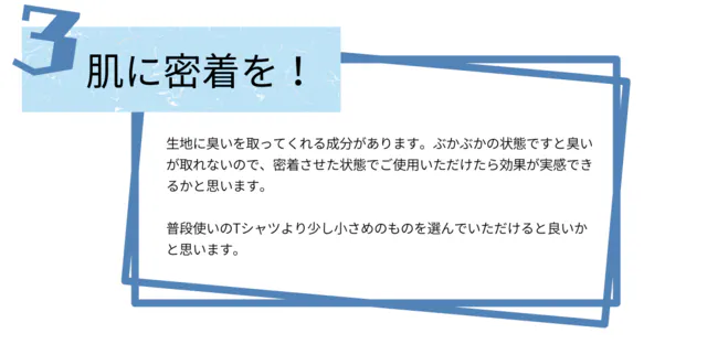 制汗剤や汗拭きシートは持ち歩かないといけない上、外出先でケアするタイミングも悩みどころです。しかし『瞬間消臭シャツ』の特殊布には消臭効果がありますので、ワキガのお悩みに最適です。ぜひお試しください!