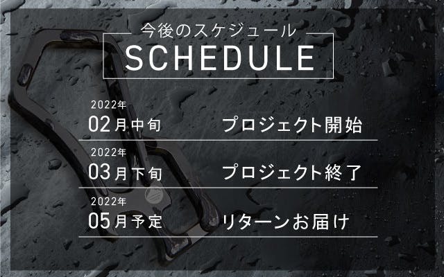 ・本文中に記載させていただいたスケジュールは、あくまでプロジェクト公開時点の予定です。応援購入の性質上、配送遅延のおそれがございます。また、特にコロナウィルスにより配送予定が大幅に【約1カ月間】送れる場合があります。