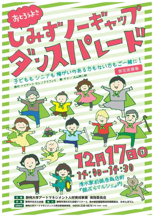 実は彼ら(彼女ら)は、「ノーギャップ」、すなわち「子どももシニアも障がいのある方もない方も誰でも」踊ることでつながることを示す絵、なのです。車いすの子、目をつぶっている子もいますよね。彼らがみんな揃うことで、我らが目指す「ノーギャップ」を体現しているのです。