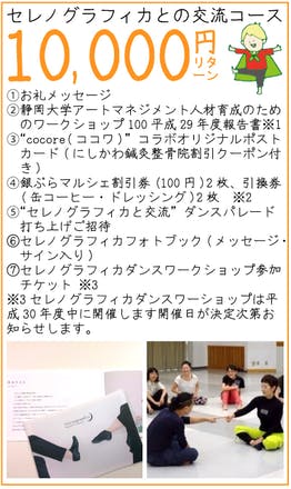さて、本プロジェクトのパトロン募集終了日まであと6日。もうすぐ終わってしまう…という雰囲気がメンバー内にも漂い、最後のお願いのお声がけをさせていただいております。そのおかげでパロトン様が日々増えている!本当にありがとうございます。当日に向けての準備の動きも慌ただしくなってまいりました。そんななか、本文中のリターンをもっと見やすくできるのでは、とアートマネジメント仲間のデザイナーKさんがデザインを送ってくれました!本当にありがたい!こうして、仲間に支えられ、成り立っております。(画像は、以前投稿にも書かせていただいたオススメの10,000円コース)