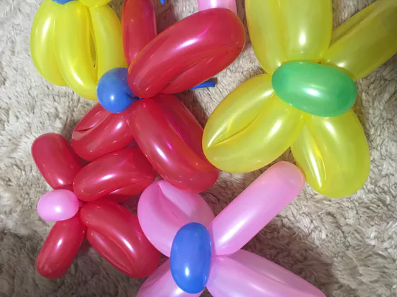 以前紹介した小道具のフラワーバルーンも前日(風船なので、前日に作らないとしぼんでしまうんです。)に作るのですが、その材料となる風船が手に入らないと、メンバーsmileからSOSが!
