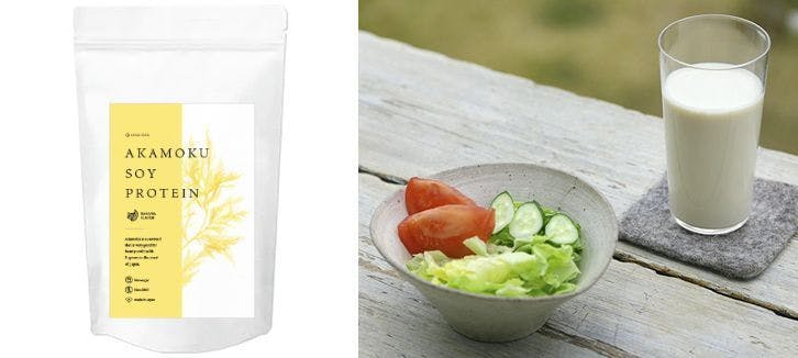 ※箱の中身は野菜の見本 (イメージ画像) 『 アカモクソイプロテイン バナナ味(ビューティープロテイン) 』のご紹介