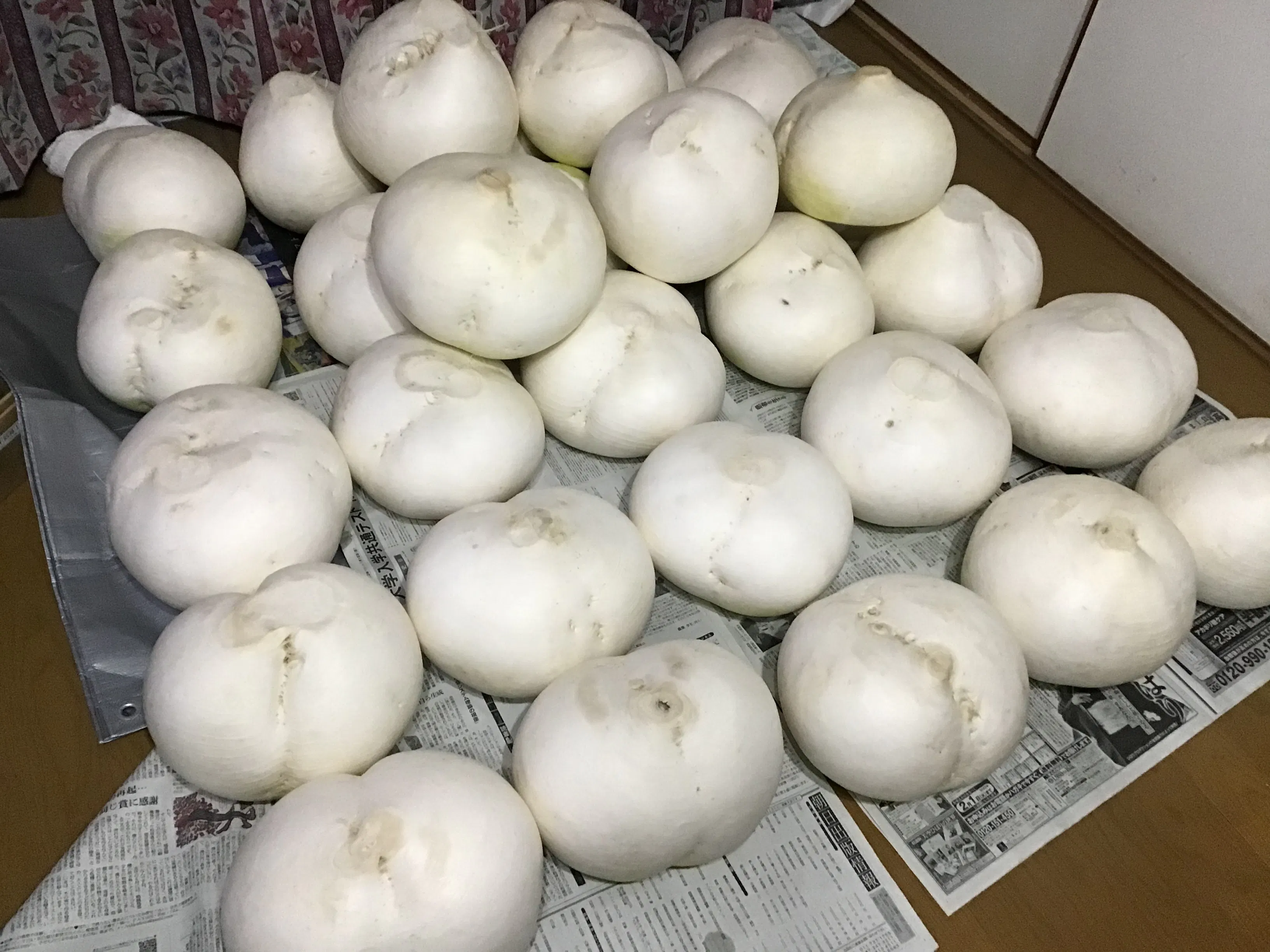 ⿅児島⼤学の加治屋先⽣には、 トリゴネリンの研究用に間引きの大根葉や収穫時の大根を提供したり、種蒔きから間引き、収穫などの農作業にも来てもらってます。