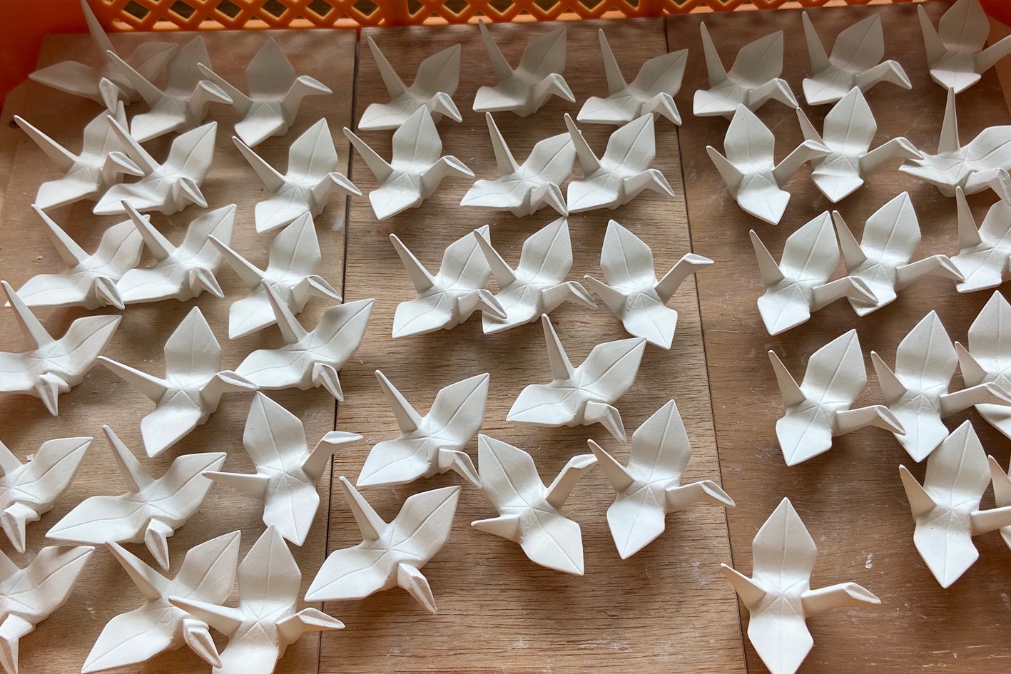 核のない平和な世界を祈念した鶴の置物を幸兵衛窯さんと開発させて頂き、その際にはキャンプファイヤーのクラウドファンディングで多くの方にご支援頂きました。