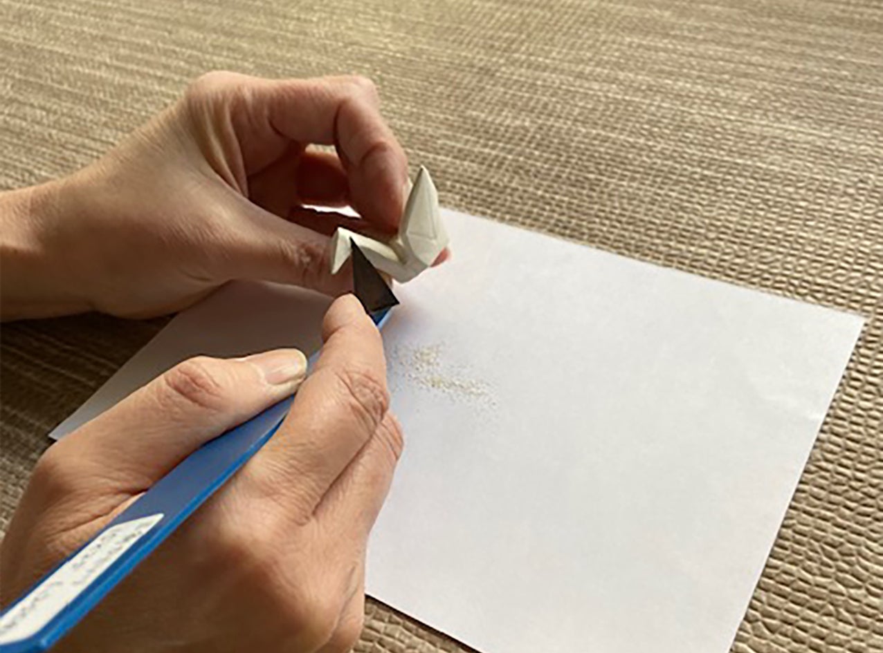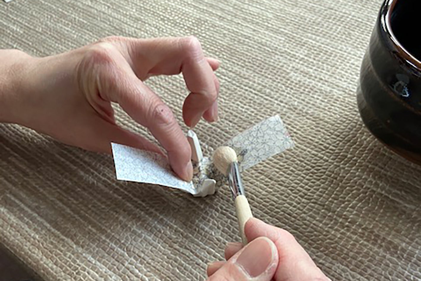 銅版という転写を丁寧に張り付けます。手先が器用でないとうまく貼れません。特にくちばしは難しいです。