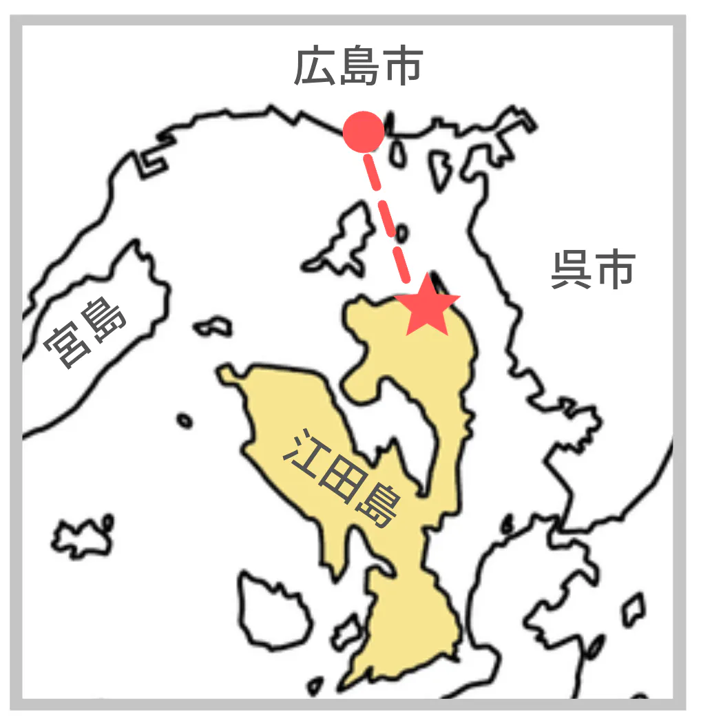 広島市の真下に位置し、広島港からはフェリーで30分、呉市からは橋で繋がっており車で40分ほど。島でありながら都市部へすぐに行けるという、田舎と都会をいいとこ取りできる島です。