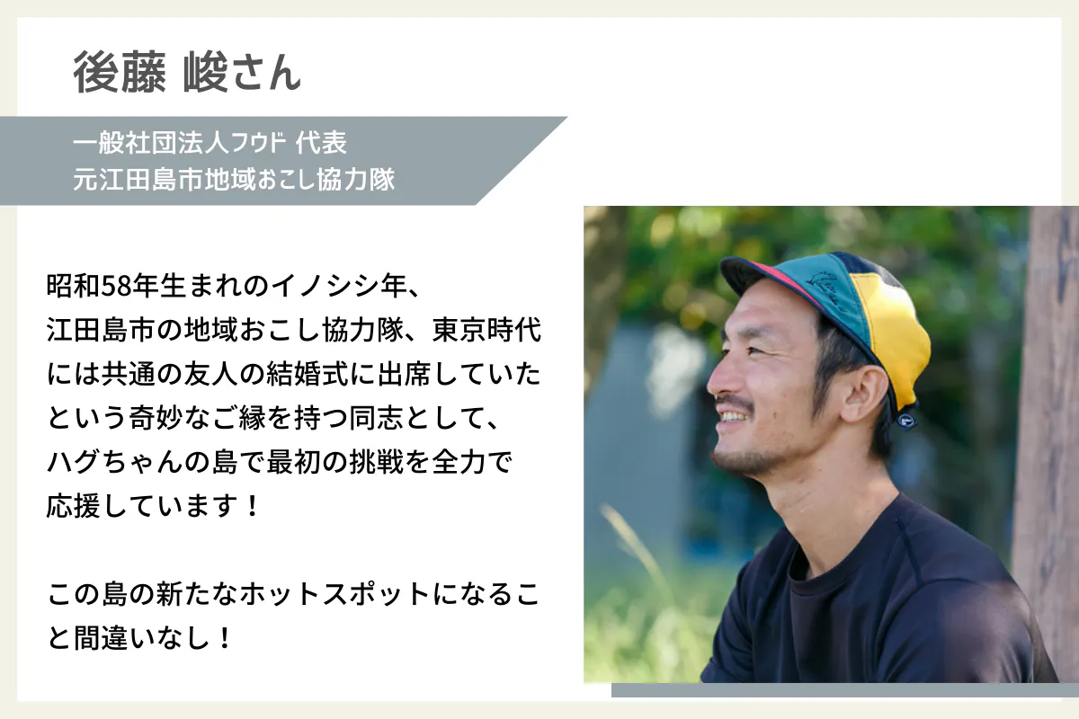また、今回のプロジェクトのもう1つの目的は島民、移住者、観光客の3者が交流できる場にすることで色々な縁を生み、江田島を盛り上げる交流スポットになることです。
