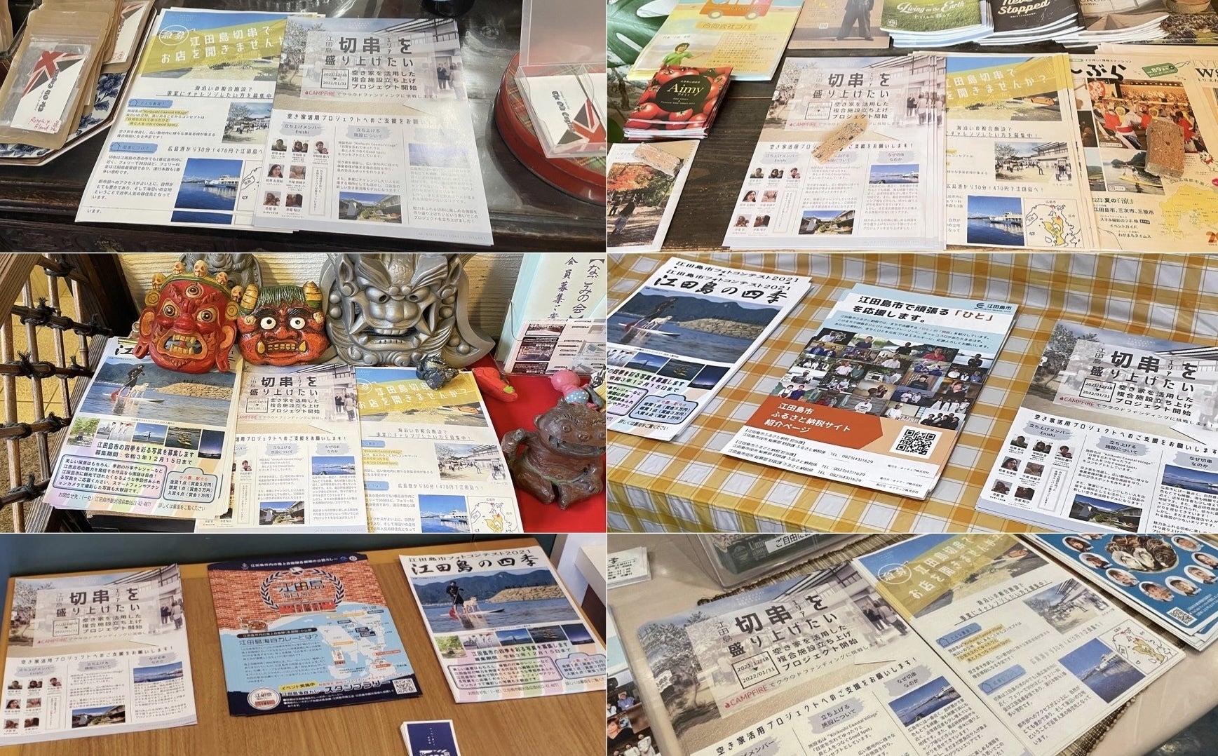 \クラウドファンディング終了まであと20日/12月18日から始まったクラウドファンディングもいよいよ残り20日を切りました!!ここからラストスパートです!現在達成率29%、88名のご支援者様より880,500円のご支援金をお預かりしております。ご支援くださった皆様ありがとうございます。また、江田島内・広島市内にてこれまで25の店舗様にご協力頂きチラシを置いていただいております。そして、当プロジェクトを見つけてくださり取材してくださった中国新聞様や広島テレビ様、広報活動にご協力いただいている江田島市商工会議所様、江田島市市役所のみなさま、皆様のご協力を頂いてここまで来ることが出来ました。切串地域のみなさまからもたくさん「応援してるよ!」と声をかけて頂き、本当に嬉しいかぎりです。今回のプロジェクトを通して本当に多くの方と出会うことができました。まだ残り20日ではありますが、クラウドファンディングの折り返し地点を過ぎ、ラストスパートが始まるこのタイミングでこれまでご協力頂いている皆様へ感謝をお伝えしたいです。本当にみなさまありがとうございます。最終日まで精一杯頑張りますので引き続き応援よろしくお願いいたします!!