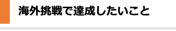 私には海外に挑戦する上でいくつか達成したい目標があります。