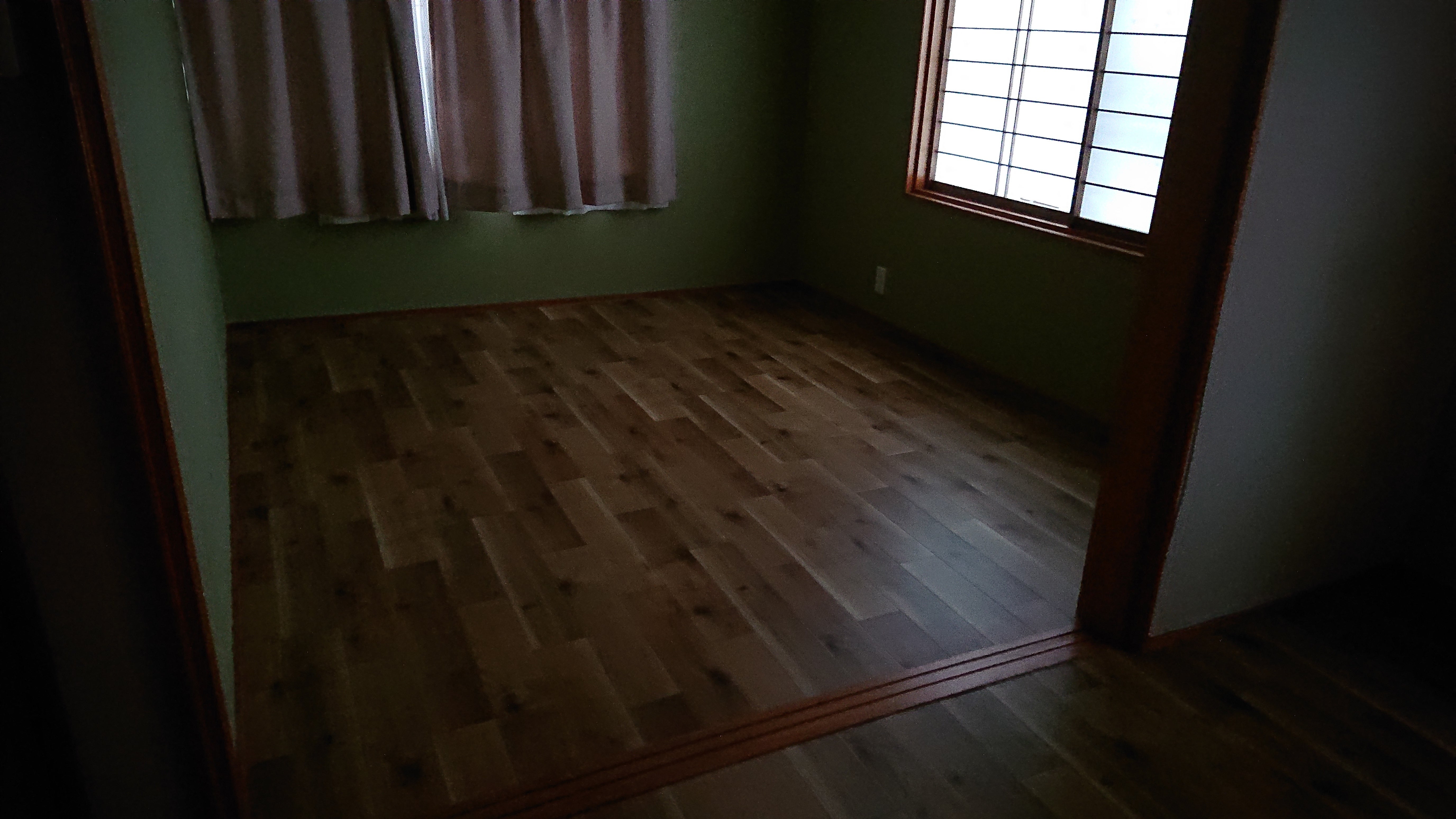 【室内犬舎予定の別棟和室】 壁の補修と張り替え、床をクッションフロアに張り替え