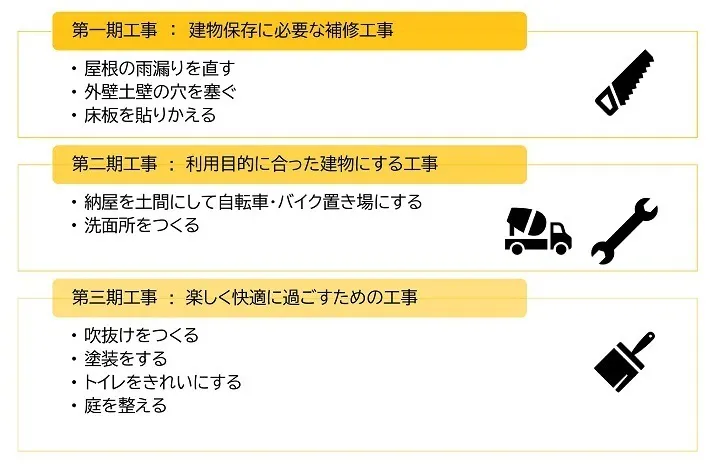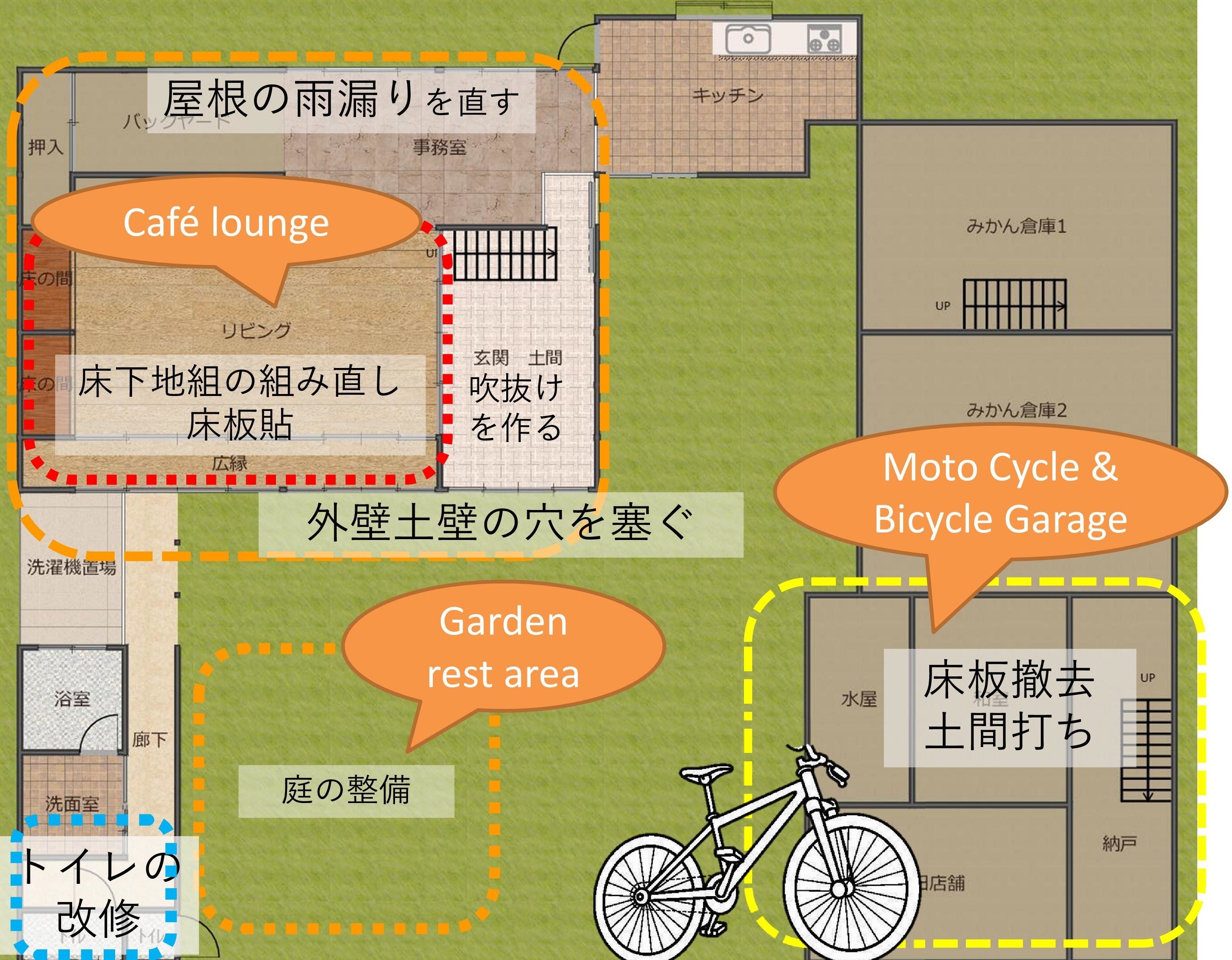 この「古民家カフェ&ロードランナーズハウス」がオープンするまでの期間は、改修工事をワークショップ形式で進めていきます。