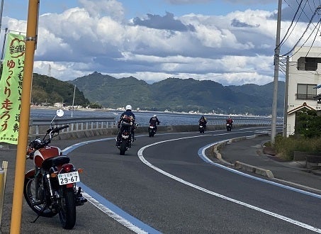 とびしま海道は美しい海岸線のアップダウン、緩やかなカーブが続き、高台から海を見下ろしたり、海面ぎりぎりで水面を感じられる、希少なコース。