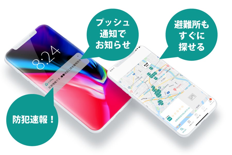 ここに警察に寄せられた不審者情報や、災害情報などの市の情報をプッシュ通知設定することで、ニュースが流れるようになり、生活に安心と安全をお届けする事が可能になります。