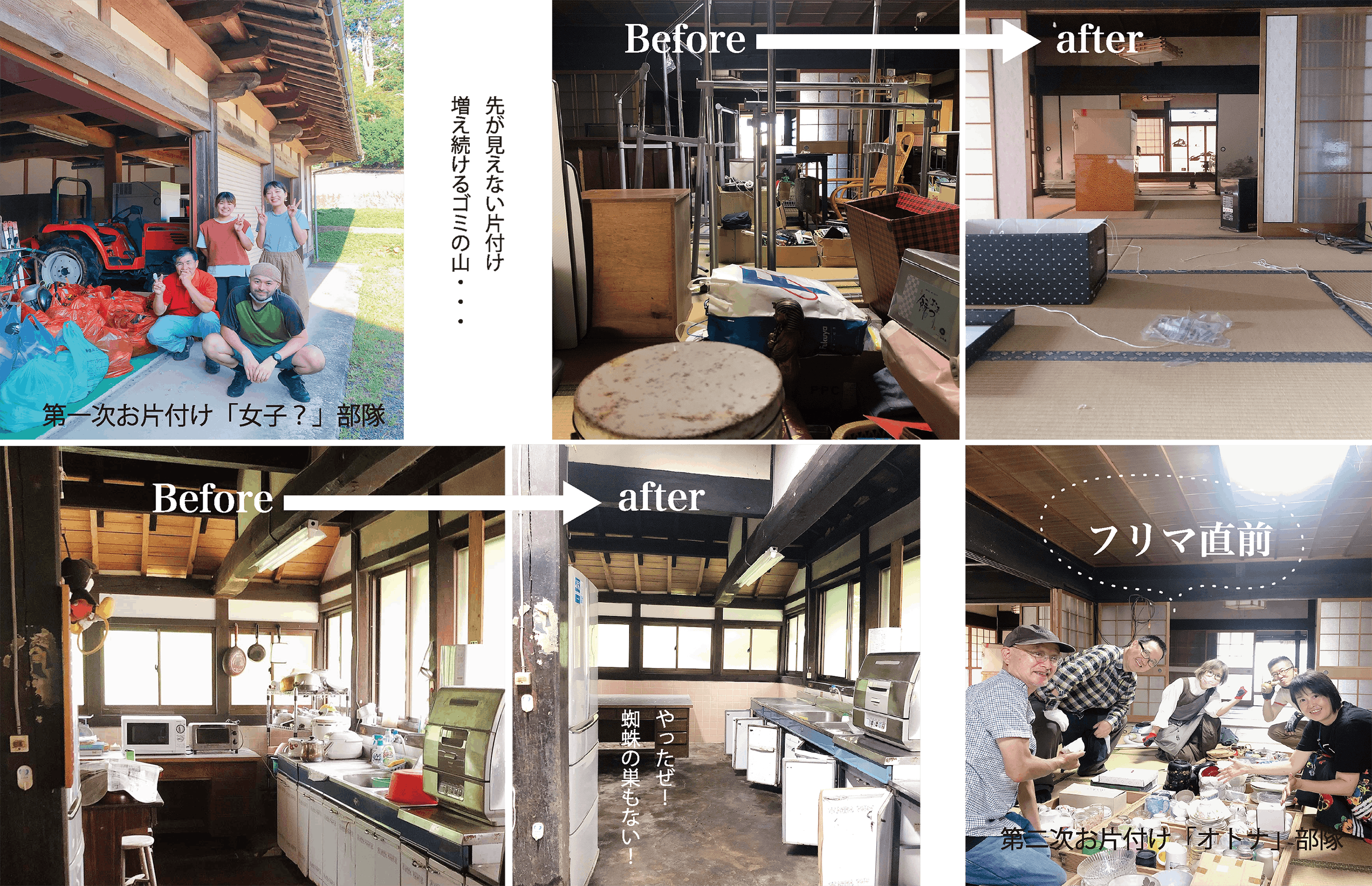 2021年秋、セントルマルシェ当日に照準を合わせ片付けを始めました。片付けには広島大学の地域活性グループ「maholabo」のメンバーが参加してまず母屋から。とにかくものすごい量です。細かなゴミの仕分けには苦労しましたが、直前には次は「オトナ」部隊が仕分けをしてくれました。おかげさまでなんとかお披露目することができました。