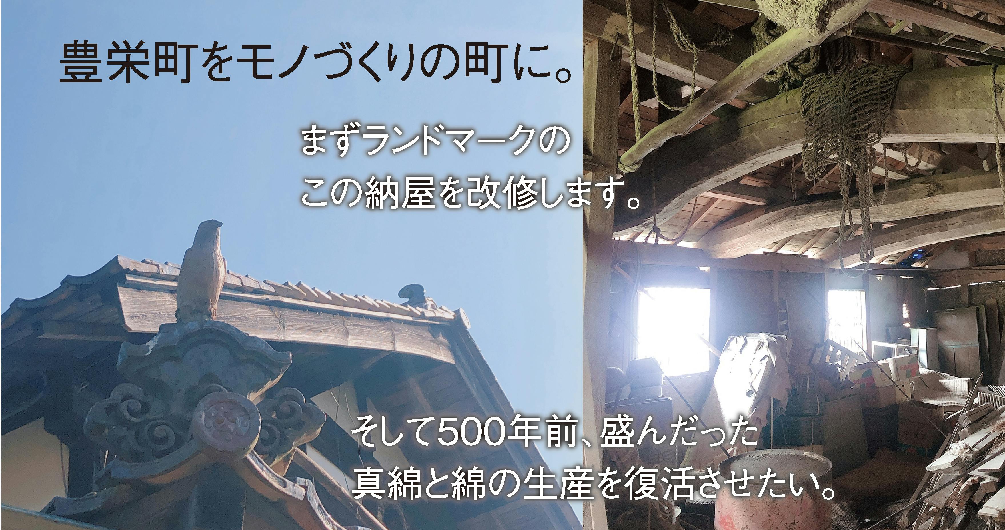 200年前は真綿や綿の栽培が盛んだった豊栄町。国道沿いの豪農を再生し、休耕田に綿を植える。そして綿花栽培を中心とした産業を興し、鉄や木工、染色などモノづくりが集まる地域のシンボルにしたい。